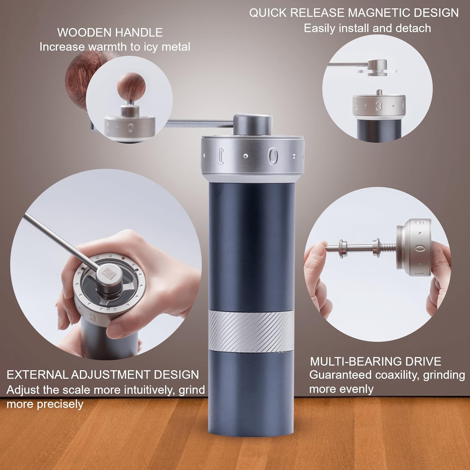 Xeoleo 50mm Aluminum Manual Coffee Grinder Stainless Steel Burr