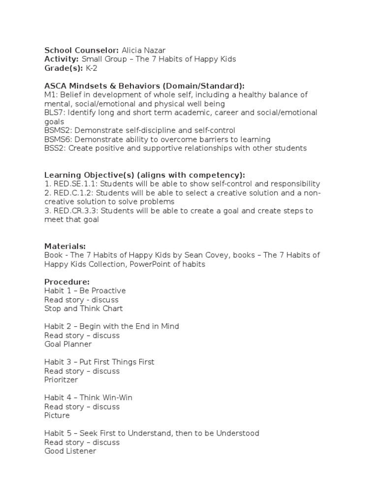7 Habits Of Happy Kids Activities Mrs Mcgorisk S Class The