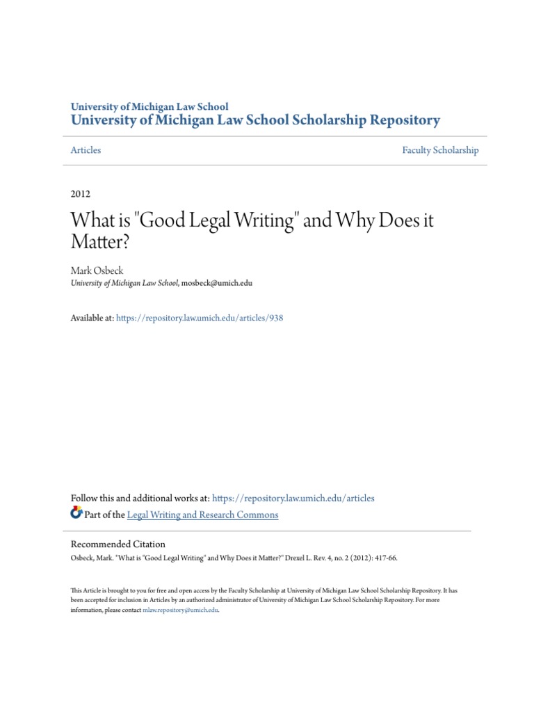 What Is Good Legal Writing And Why Does It Matter Summary